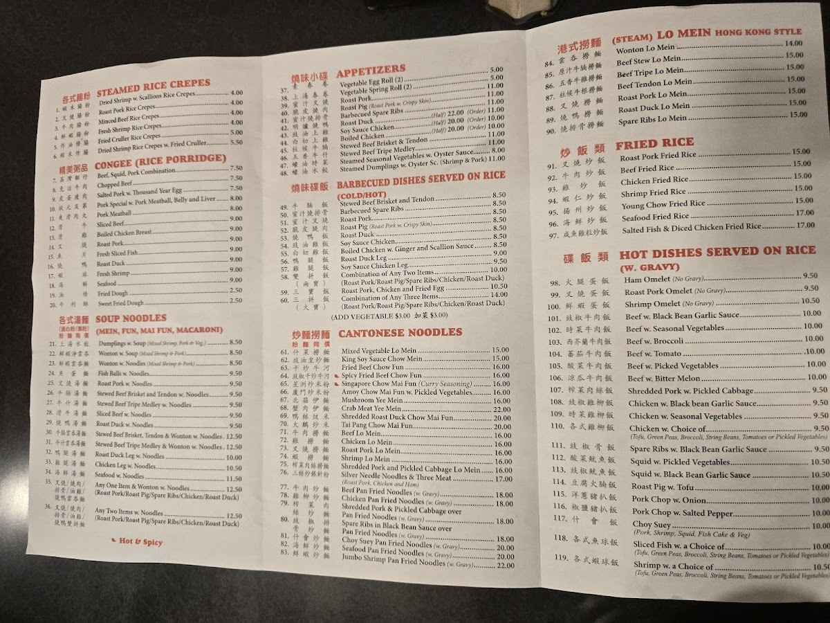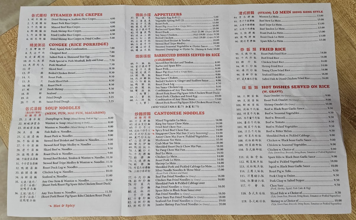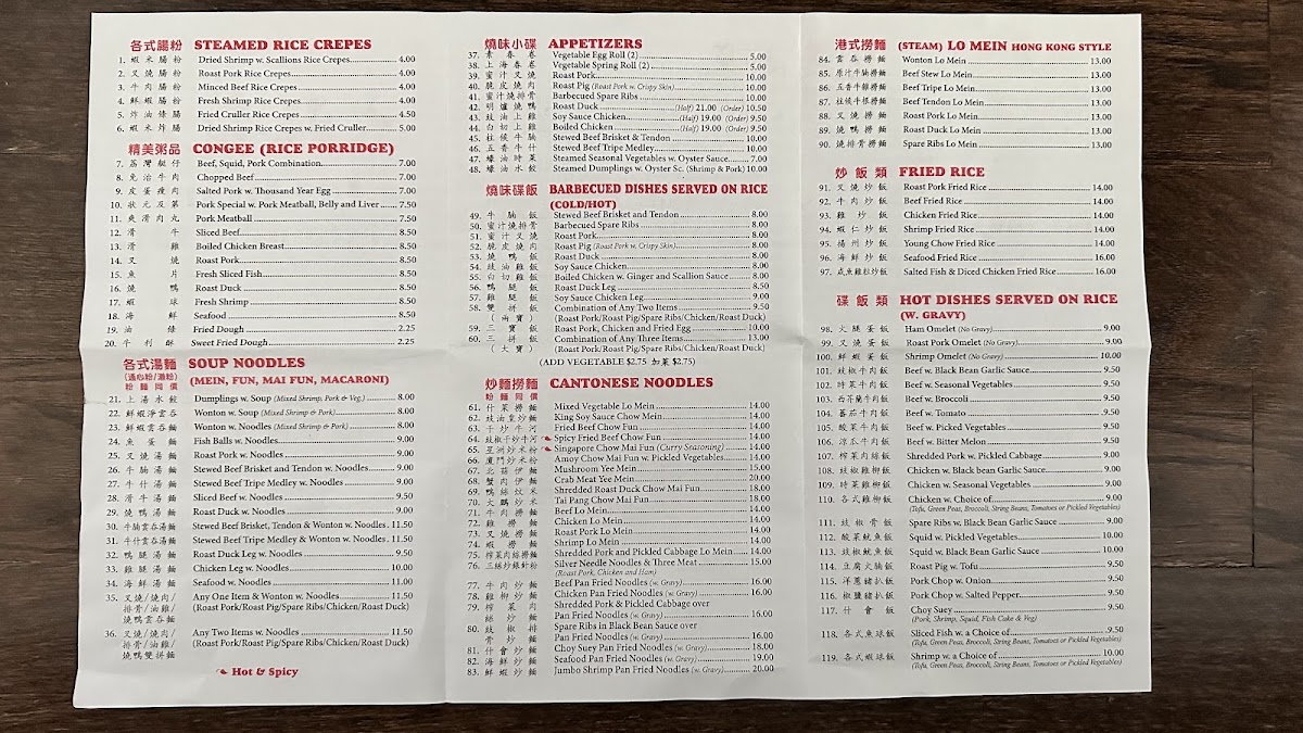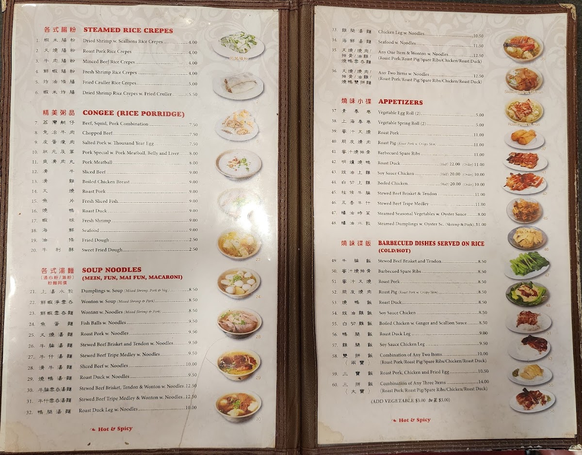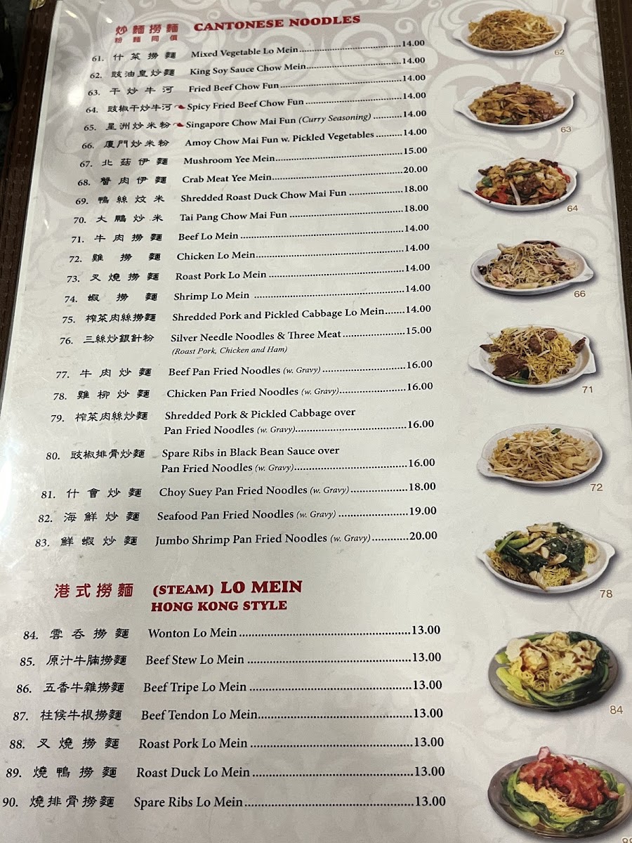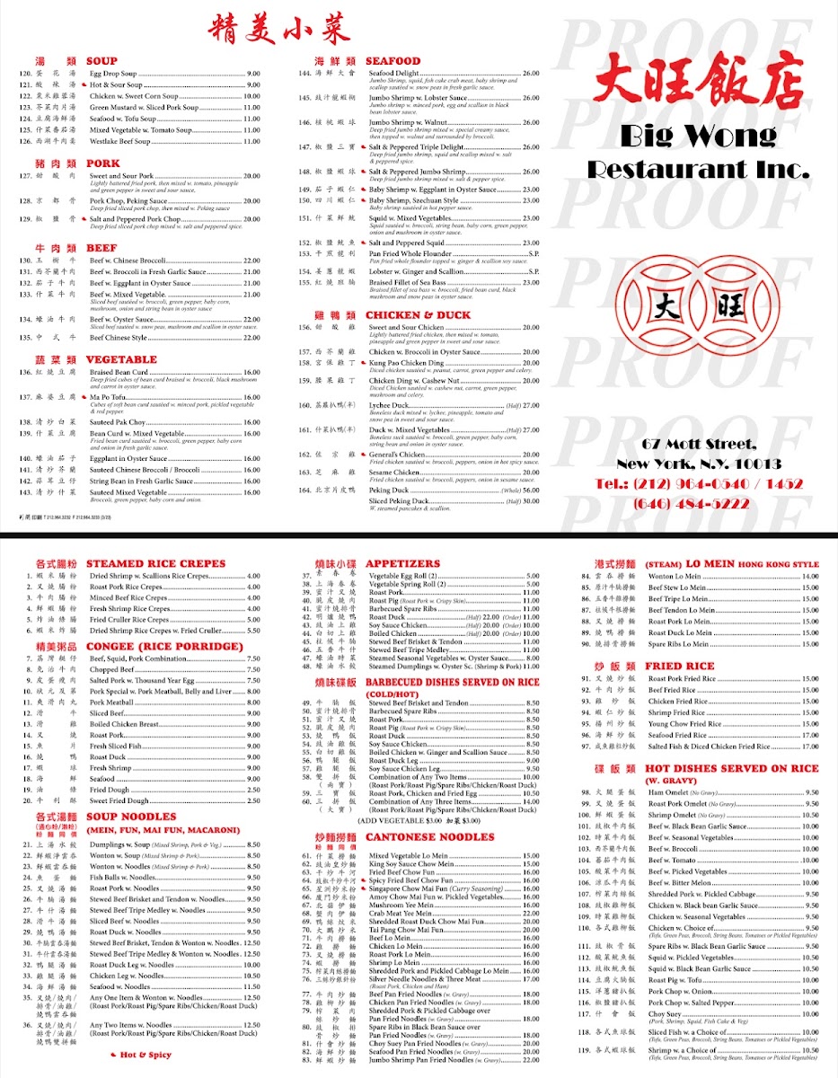 At Big Wong, the menu is a tantalizing journey through classic Cantonese flavors. Begin your meal with a steaming bowl of Wonton with Soup, where the delicate dumplings, filled with a delightful blend of shrimp and pork, float in a savory broth that warms the soul. If you're craving heartier fare, the Roasted Duck is a showstopper; tender, succulent, and perfectly seasoned, it’s no wonder this dish has garnered a loyal following among diners. With prices ranging mostly between $10 and $30, it combines quality with accessibility, making it a must-try for anyone seeking comfort food.